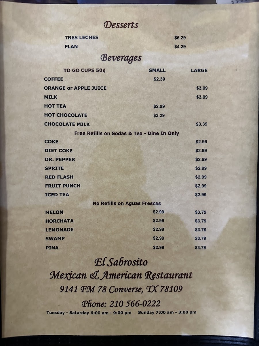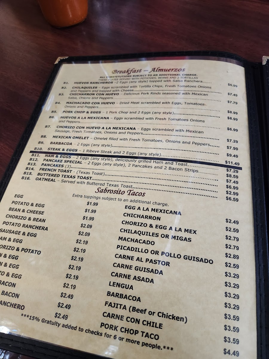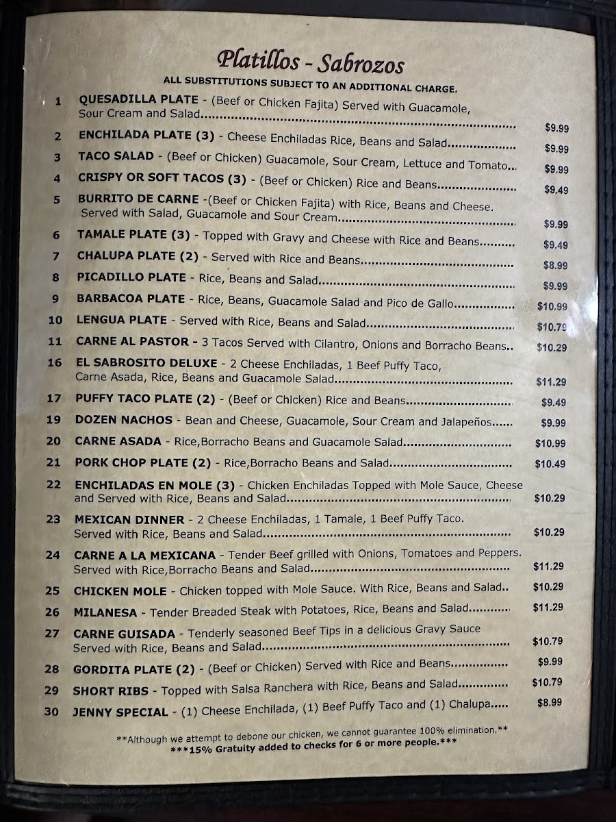 El Sabrosito Mexican Restaurant Menu