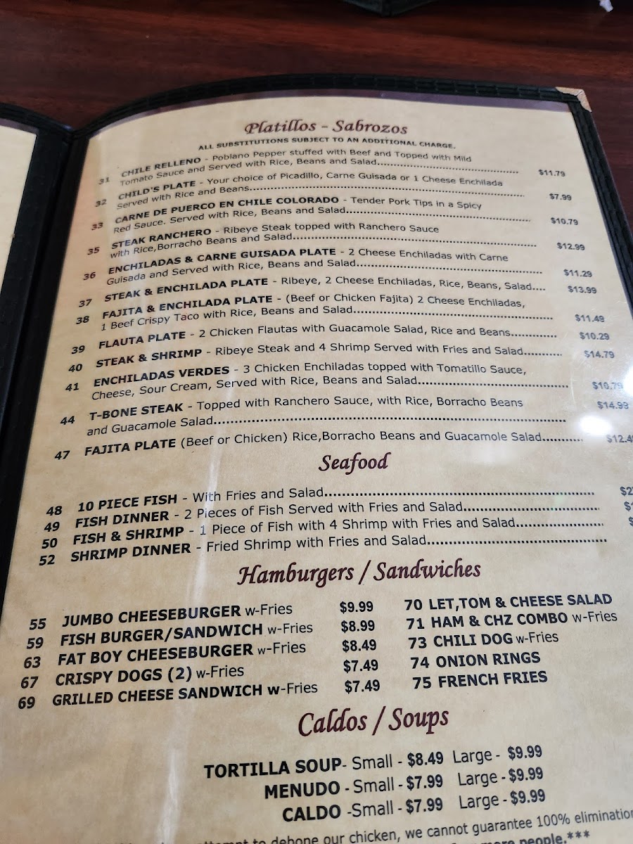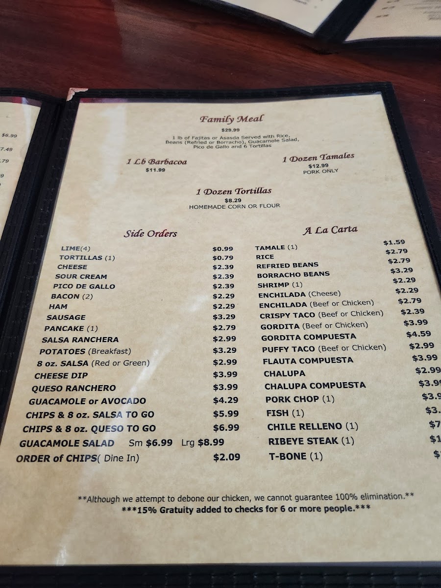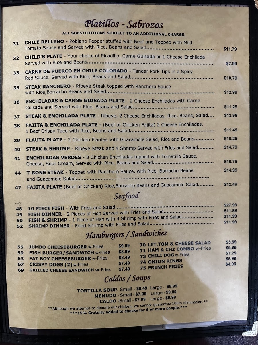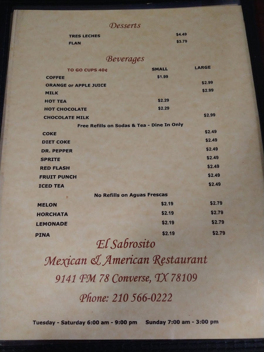 El Sabrosito Mexican Restaurant Menu